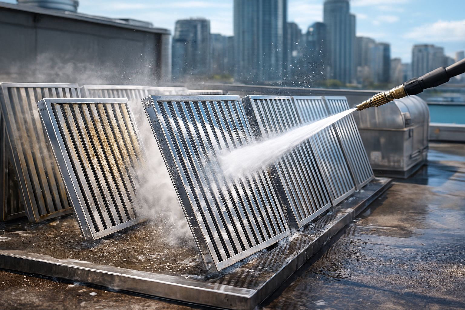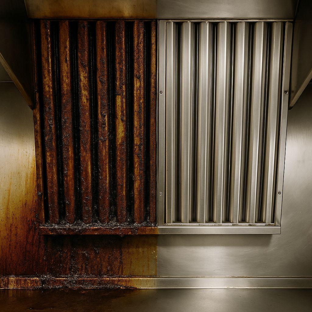 Grease filters are the first line of defense in your kitchen exhaust system. Over time, they trap heavy grease and smoke particles, restricting airflow and increasing fire risk. Our professional filter cleaning service restores full performance by removing built-up grease, improving ventilation, and keeping your system compliant with NFPA 96 standards.