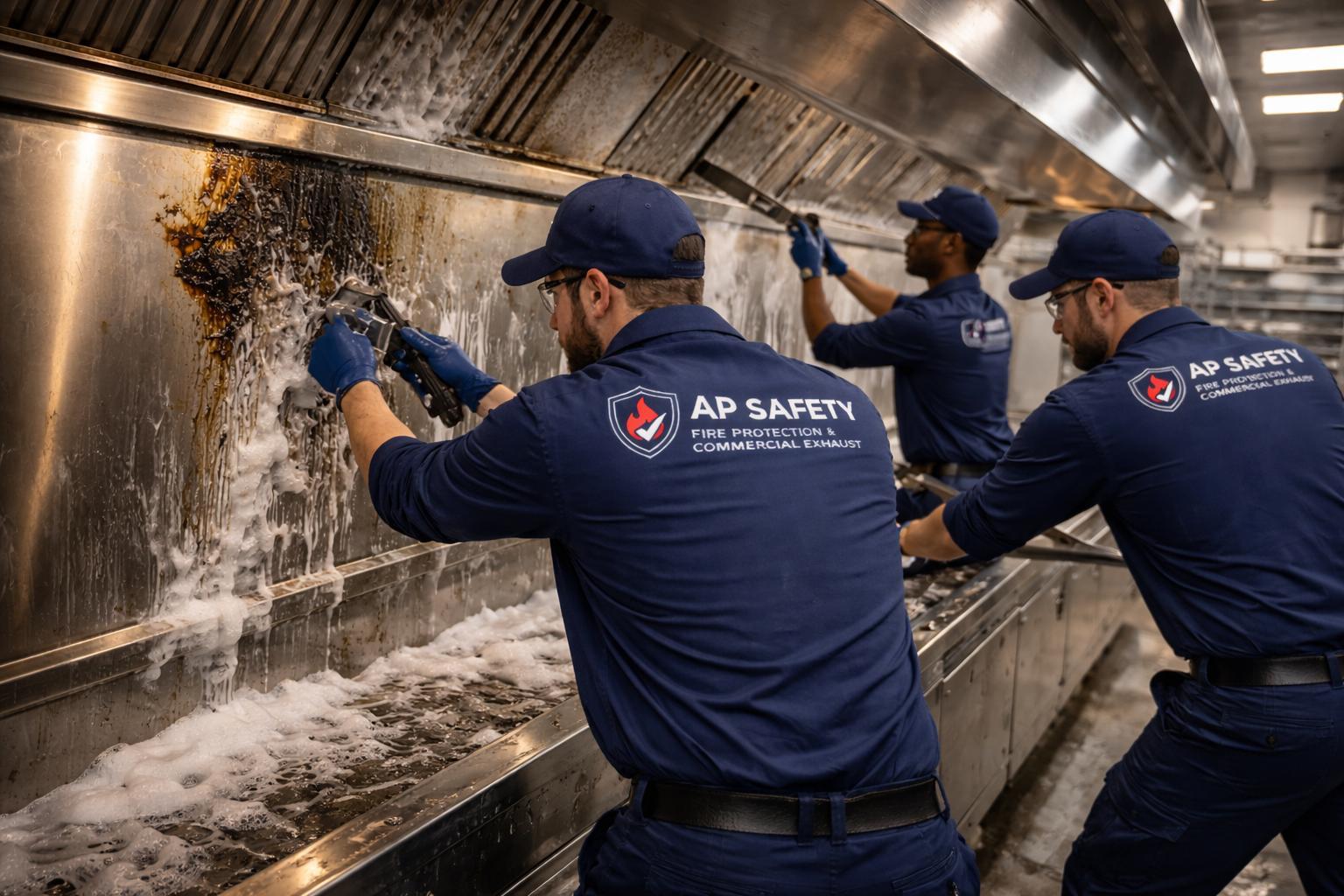 AP SAFETY’s Restoration Cleaning is designed for hood and duct systems with heavy, baked-on grease or long periods without maintenance. This service brings your ventilation system back to a safe, efficient, and fully restored condition.